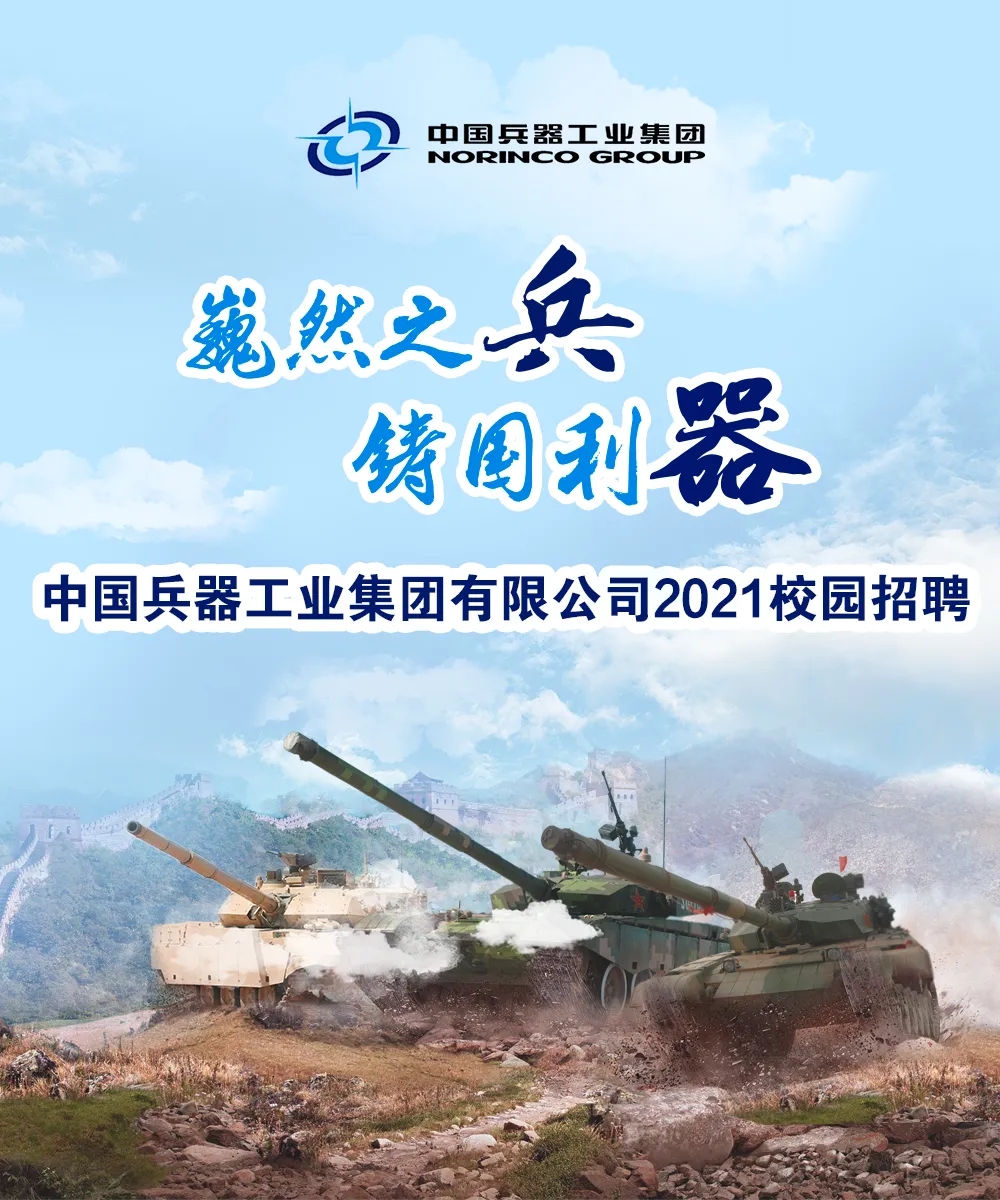 時(shí)間的軌道 承載著奮斗的汗水和腳印 十?dāng)?shù)年寒窗,半余生苦讀 即將告別象牙塔的你 是否已經(jīng)準(zhǔn)備好 在新的人生道路上揚(yáng)帆起航 我們懂你的赤子之心 我們將伴你共同成長 感受中國兵器的魅力 來兵器工業(yè),攜夢想同行 中國兵器工業(yè)集團(tuán) 2021春季校園招聘 正式啟動(dòng)! 關(guān)于我們 中國兵器工業(yè)集團(tuán)有限公司 ◆是我軍機(jī)械化、信息化、智能化裝備發(fā)展的骨干 ◆是全軍毀傷打擊的核心支撐 ◆是現(xiàn)代化新型陸軍體系作戰(zhàn)能力科研制造的主體 ◆是國家“一帶一路”建設(shè)和軍民融合發(fā)展的主力 中國兵器工業(yè)集團(tuán)現(xiàn)有50余家子集團(tuán)和直管單位,分布在北京、陜西、內(nèi)蒙古等29個(gè)省、市、自治區(qū),在全球70余個(gè)國家和地區(qū)設(shè)立了100余家境外分子公司和代表處。集團(tuán)公司連續(xù)16個(gè)年度和5個(gè)任期蟬聯(lián)國務(wù)院國資委業(yè)績考核A級(jí),位列世界500強(qiáng)企業(yè)排名第154位。 揮別校園 人生的挑戰(zhàn)才剛剛開始 為你的未來 選擇一個(gè)廣闊的舞臺(tái) 加入兵器工業(yè),追尋人生理想 揮灑青春激情,共鑄強(qiáng)大國防 履行強(qiáng)軍首責(zé),推動(dòng)高質(zhì)量發(fā)展 中國兵器工業(yè)集團(tuán) 期待志同道合的你 |