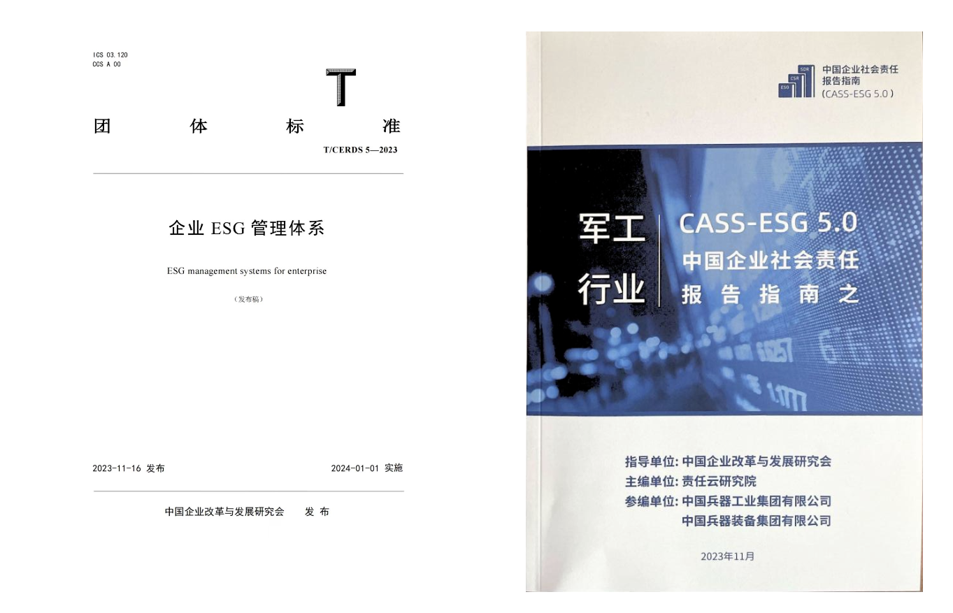 積極參與行業(yè)內(nèi)外社會責任生態(tài)建設。積極開展社會責任相關研究。集團公司作為參編單位參與了國務院國資委組織中國質(zhì)量協(xié)會開展的《企業(yè)ESG評價指南》《企業(yè)ESG管理體系 要求》(團體標準)的編制工作,為ESG工作奠定堅實的基礎。組織兵器規(guī)劃院與社科院責任云研究院合作,開展了《軍工集團ESG管理體系研究》課題研究,結(jié)合軍工行業(yè)特點,搭建軍工集團ESG管理模型和指標體系。為提升對上市公司ESG報告編制的指導性,編制《集團公司ESG報告指南(2023)》(上市公司),為上市公司ESG報告編制提供全過程支撐。在“首屆中國上市公司可持續(xù)發(fā)展大會”上,中國企業(yè)改革發(fā)展研究會發(fā)布了集團公司起草參編的《企業(yè)ESG管理體系》(T/CERDS5—2023)團體標準,在“2023中國企業(yè)社會責任報告峰會”上,正式發(fā)布了由集團公司參編支持的《中國企業(yè)社會責任報告指南(CASS-ESG5.0)之軍工行業(yè)》。
