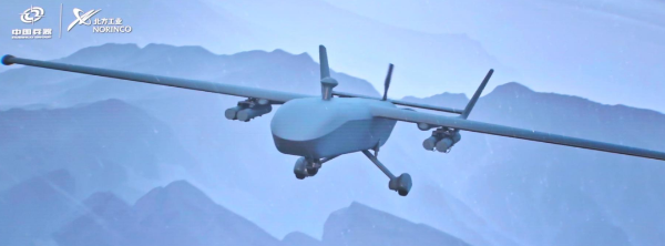金雕CR500B型無人機(jī)是一種多用途無人機(jī)系統(tǒng),可掛載多種彈藥、光電設(shè)備等任務(wù)載荷,用于執(zhí)行戰(zhàn)場偵察、目標(biāo)定位、照射指引、精確打擊和毀傷評(píng)估等戰(zhàn)術(shù)任務(wù)。該無人機(jī)系統(tǒng)具備垂直起降能力,戰(zhàn)斗準(zhǔn)備時(shí)間短,戰(zhàn)場環(huán)境適應(yīng)性強(qiáng),可以在高原地區(qū)執(zhí)行任務(wù)。